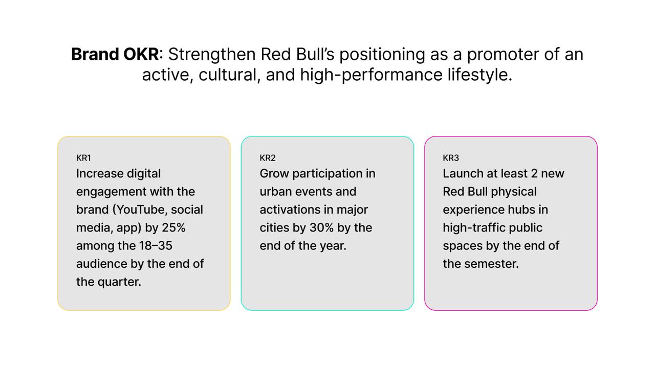 These OKRs were tied directly to Red Bull’s corporate objectives: